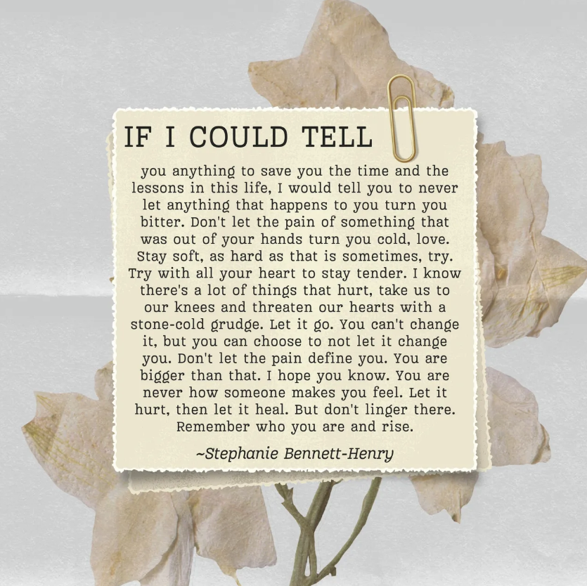 The choice to remain tender, to let go of bitterness, and to allow ourselves to heal is an act of courage. Be courageous!